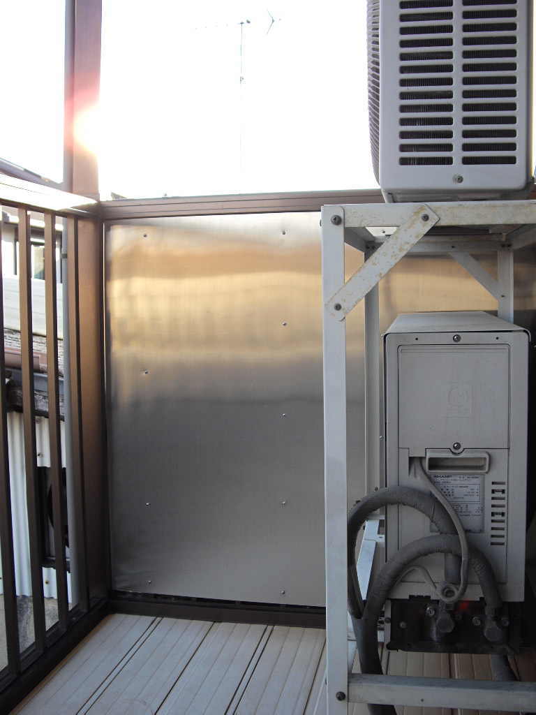 ![]() 交換前の物干し金物。 劣化してプラスチック部分が割れてきています。 ![]() ベランダ色にあわせたアルミ製に交換しました。 ![]() ベランダ側面。 隣の住宅の屋根と密接しているので、隣の屋根から跳ね返りの雨が入ってきます。 ![]() 当初 、波板が付いていたのですが、西日に当たりすぐに劣化してしまうので、 ステンレス ヘヤーラインの板を、提案させて頂きました。 ![]() |