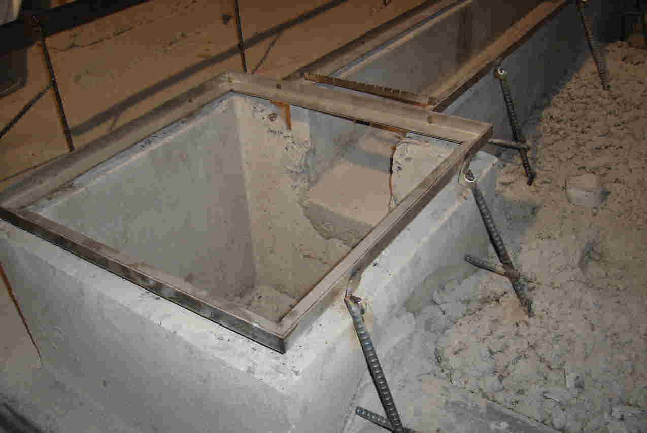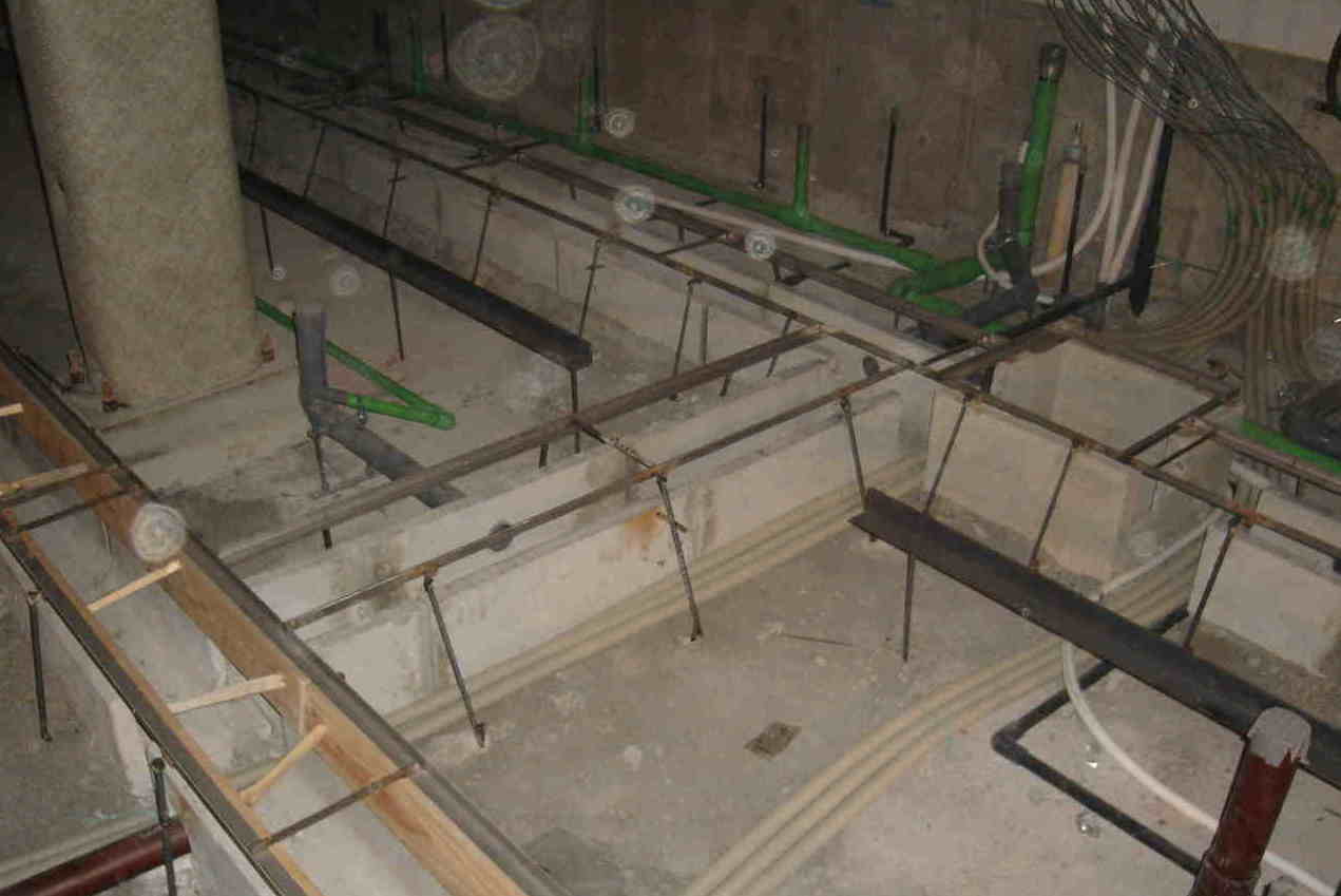 U字溝の上に、床の仕上がりレベルにあわせて鉄筋で溶接固定しました。