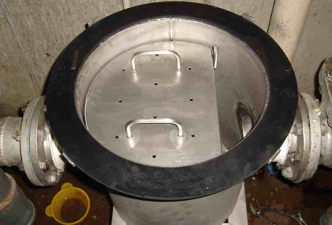 プールの配管で髪の毛等を取り除くためのタンクです。 材質はSUS No.1です。