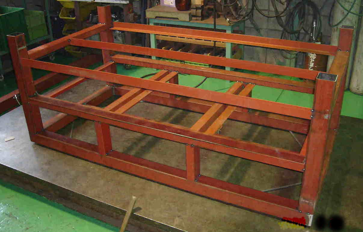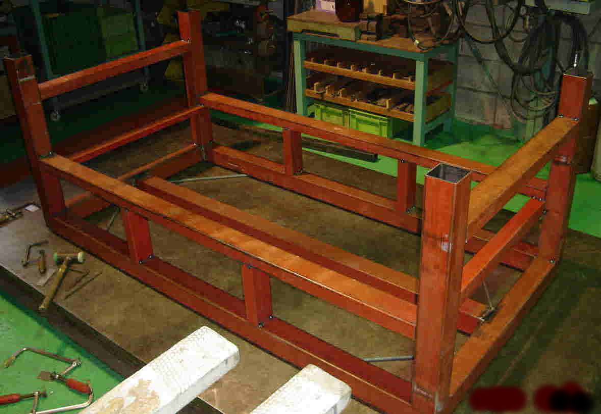 すべて溶接して、外側は平らに仕上げた後、錆止めを塗りました。